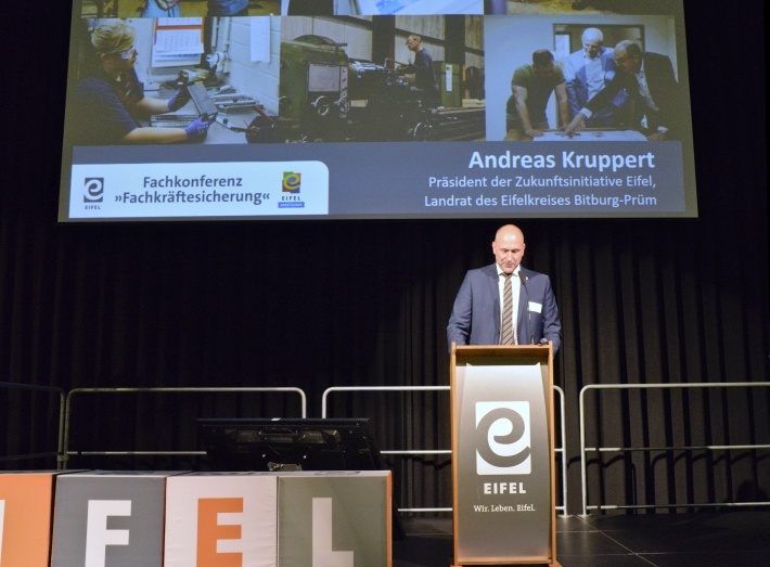 In der Bitburger Stadthalle fand eine von der Zukunftsinitiative Eifel (ZIE) und der Regionalmarke EIFEL gemeinsam veranstaltete, hochkarätige Fachkonferenz statt, welche ein Topthema der Zeit erörterte: Wie können kompetente Fachkräfte gefunden und an die Unternehmen der Region gebunden werden?