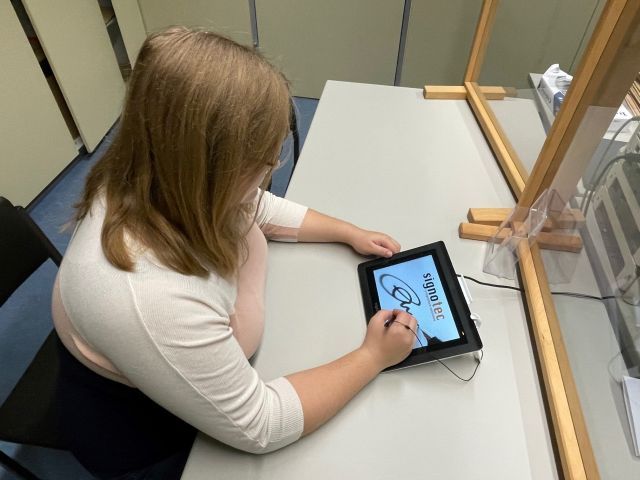 Mit Beginn des Jahres hat die Kreisverwaltung die Arbeitsplätze bei der Führerscheinstelle in Bitburg mit Unterschriften-Tablets ausgestattet. Bei der Beantragung bekommen die Bürgerinnen und Bürger nun das Antragsformular digital angezeigt und können dieses nach Prüfung digital unterschreiben.