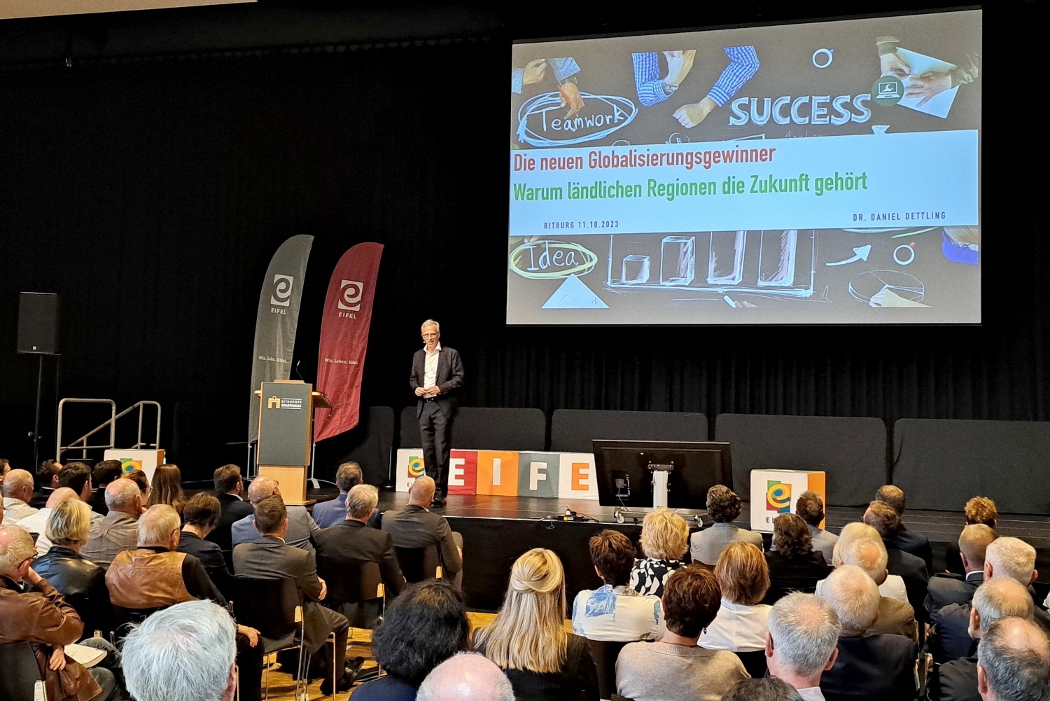 Am 11. Oktober 2023 veranstaltete die Kreisverwaltung des Eifelkreises Bitburg-Prüm ihre Abschlusskonferenz zum Kreisentwicklungskonzept und dem Zukunfts-Check Dorf in der Bitburger Stadthalle.