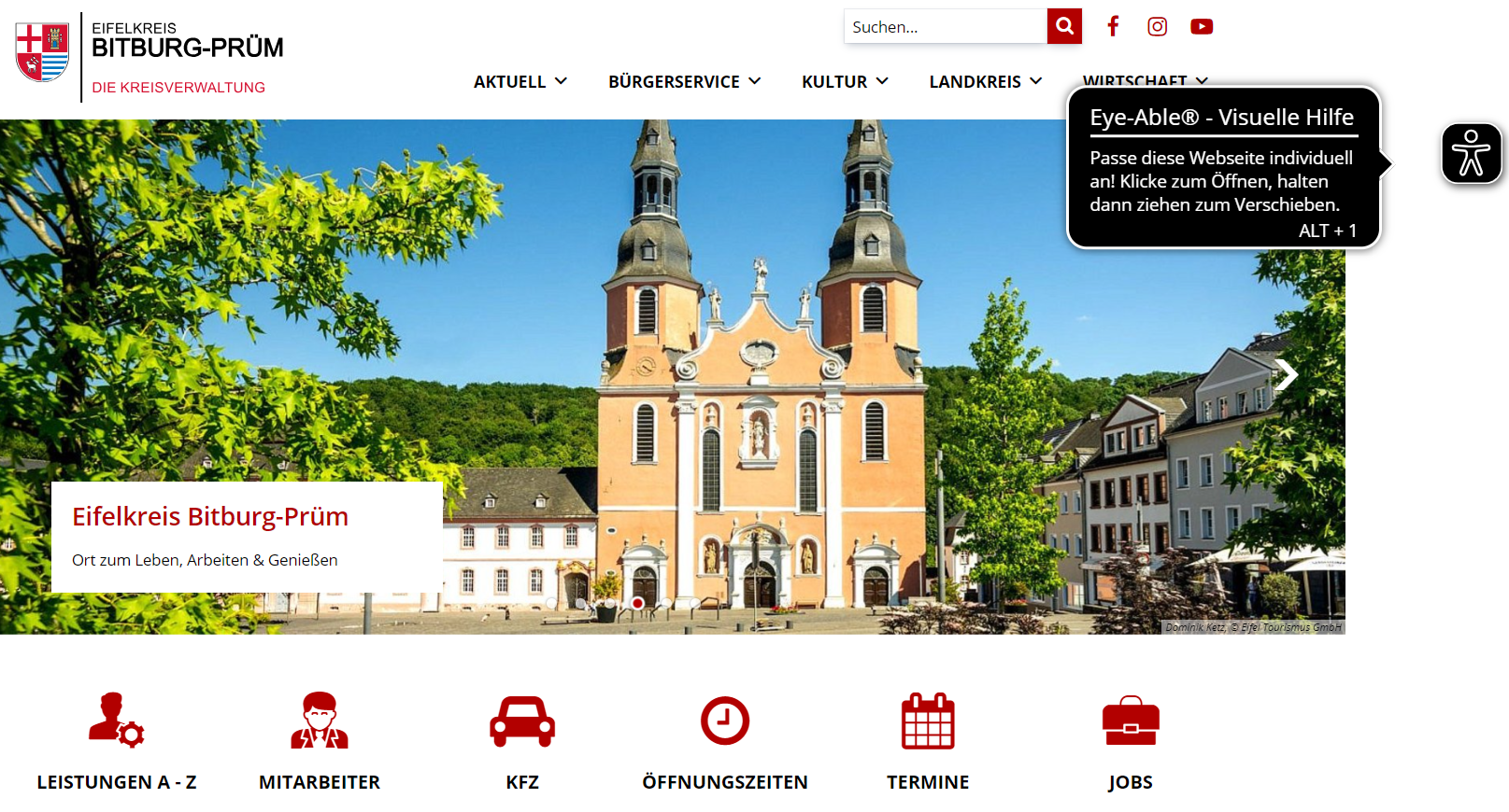Der Eifelkreis Bitburg-Prüm hat den digitalen Assistenten „EyeAble“ in seinen Internetauftritt integriert. Dieser Assistent wurde speziell für die Bedürfnisse von Menschen mit Einschränkungen entwickelt.