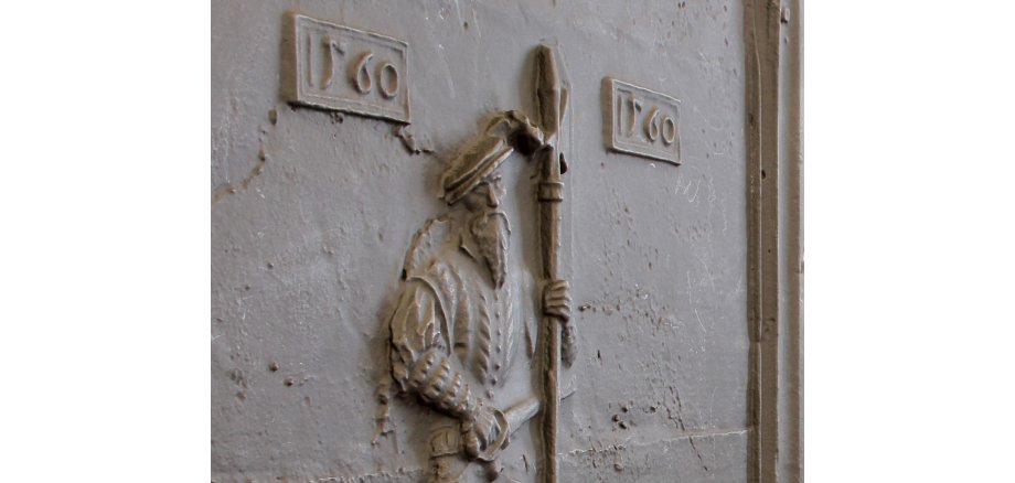 Erinnerung an die Zeit der Bauernkriege: Landsknecht auf einer Takenplatte von 1560, EV.-Nr. 10144. Foto: Burkhard Kaufmann