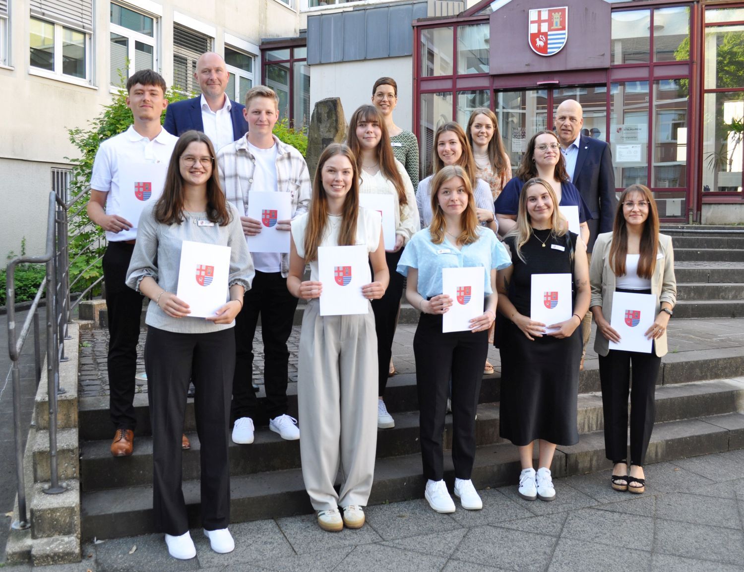 Zum 01.07.2025 begrüßte Landrat Andreas Kruppert die zehn neuen Anwärterinnen und Anwärter zu ihrem Ausbildungsstart in der Kreisverwaltung. Am Tag zuvor wurden diese zu Beamten auf Widerruf ernannt.