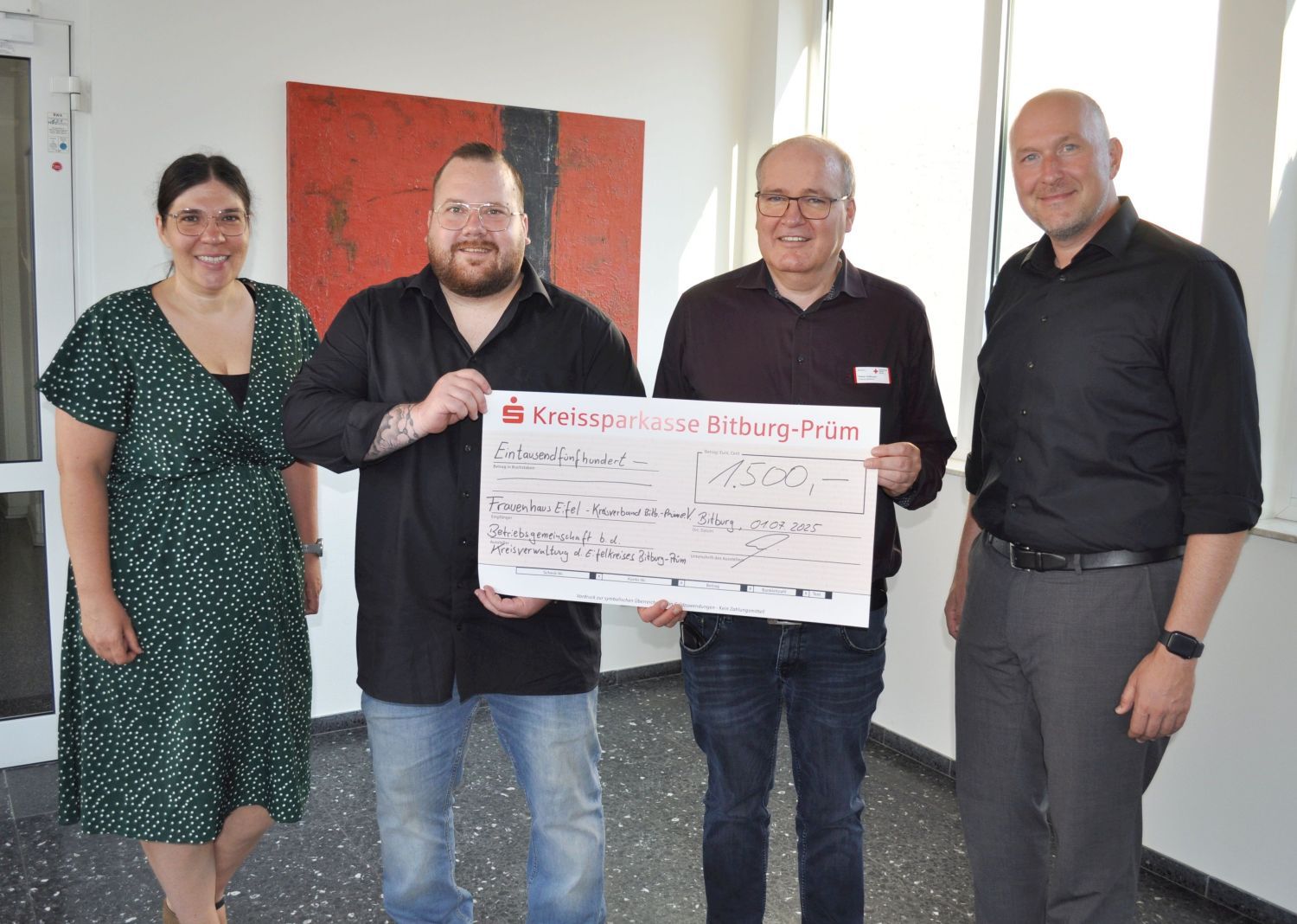 Eine Betriebsfeier der Kreisverwaltung war Anlass für die Personalvertretung, für das im vergangenen Jahr eröffnete Frauenhaus Eifel zu sammeln. Es kam ein stolzer Spendenbetrag zustande, der noch aus der Kasse der Betriebsgemeinschaft auf die Summe von 1.500 Euro aufgerundet wurde.