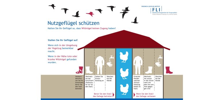 - Geflügel so halten, dass kein Kontakt zu Wildvögeln besteht.