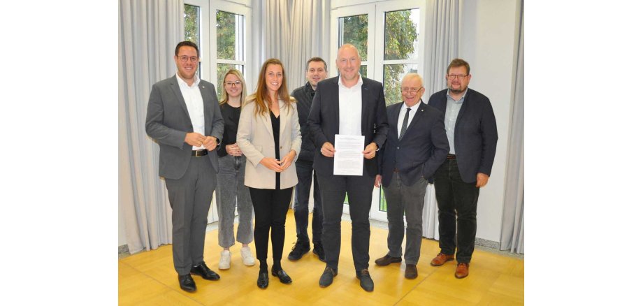 Gruppenfoto mit Landrat sowie den Bürgermeisterinnen und Bürgermeistern nach Unterzeichnung der Kooperationsvereinbarung (Foto: Kreisverwaltung)