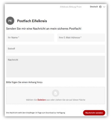 Mit dem TeamBeam-Datenbriefkasten können Sie uns große Daten oder sensible Informationen mit personenbezogenen Daten direkt über unsere Website zusenden.